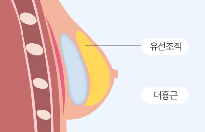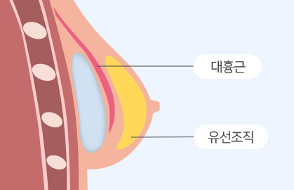 유선조직과 가슴근육 사이에